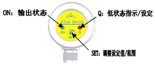 3、待流速穩(wěn)定后,調(diào)節(jié)“SET”螺絲,使流量開(kāi)關(guān)從Q狀態(tài)(紅燈亮)剛好轉(zhuǎn)入ON狀態(tài)(綠燈亮)。